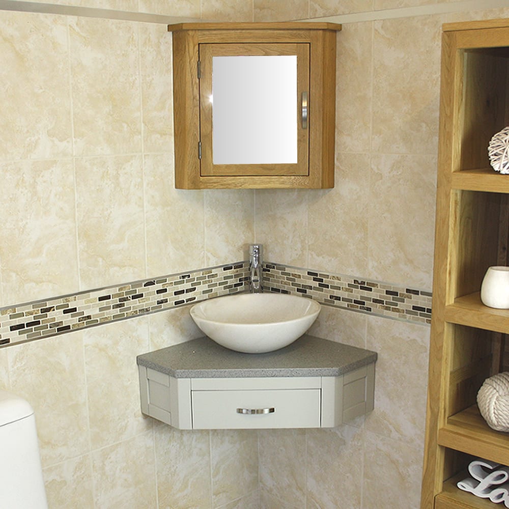 Mirrored corner cabinet and tall storage unit in image are not included but are optional extras, please see below.