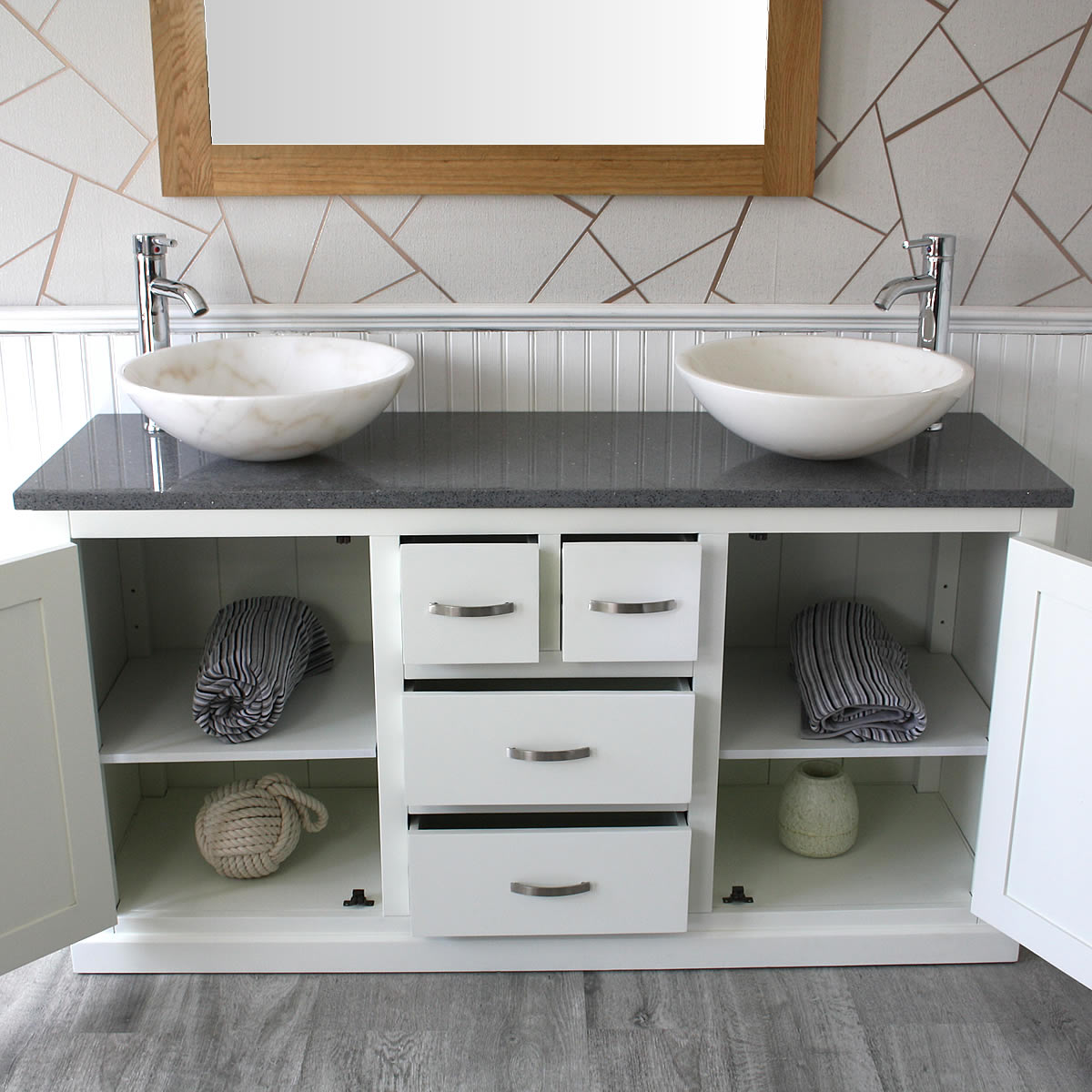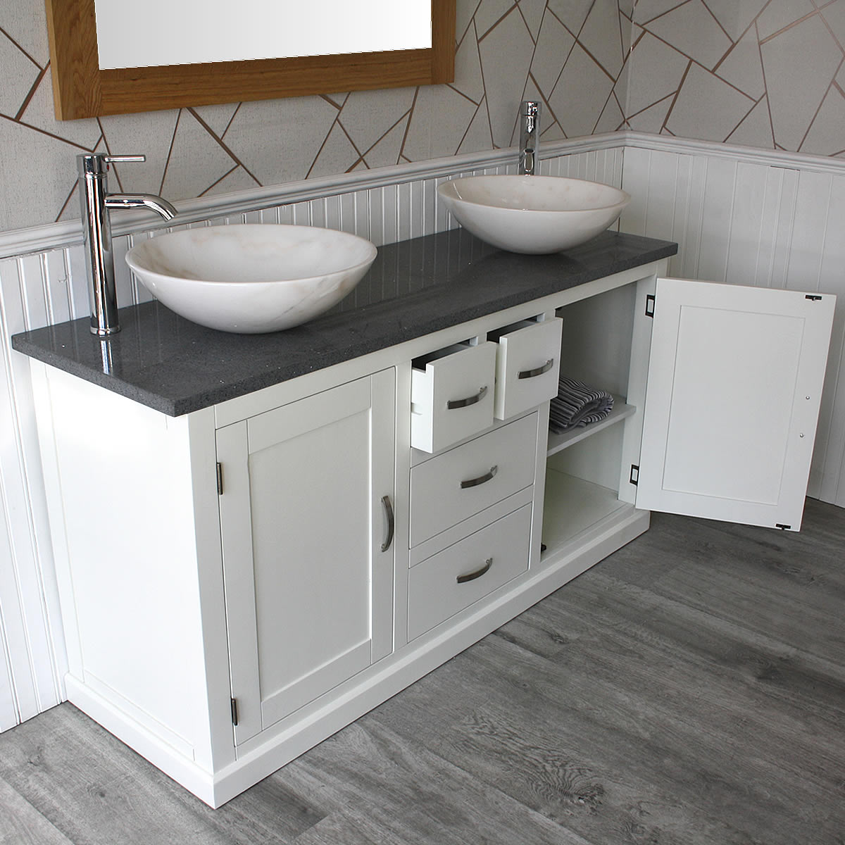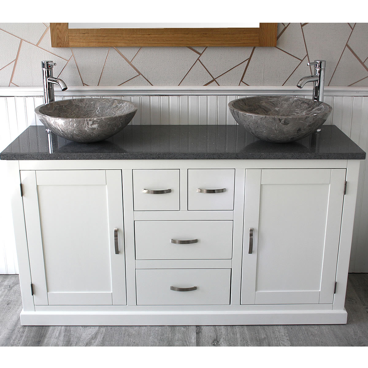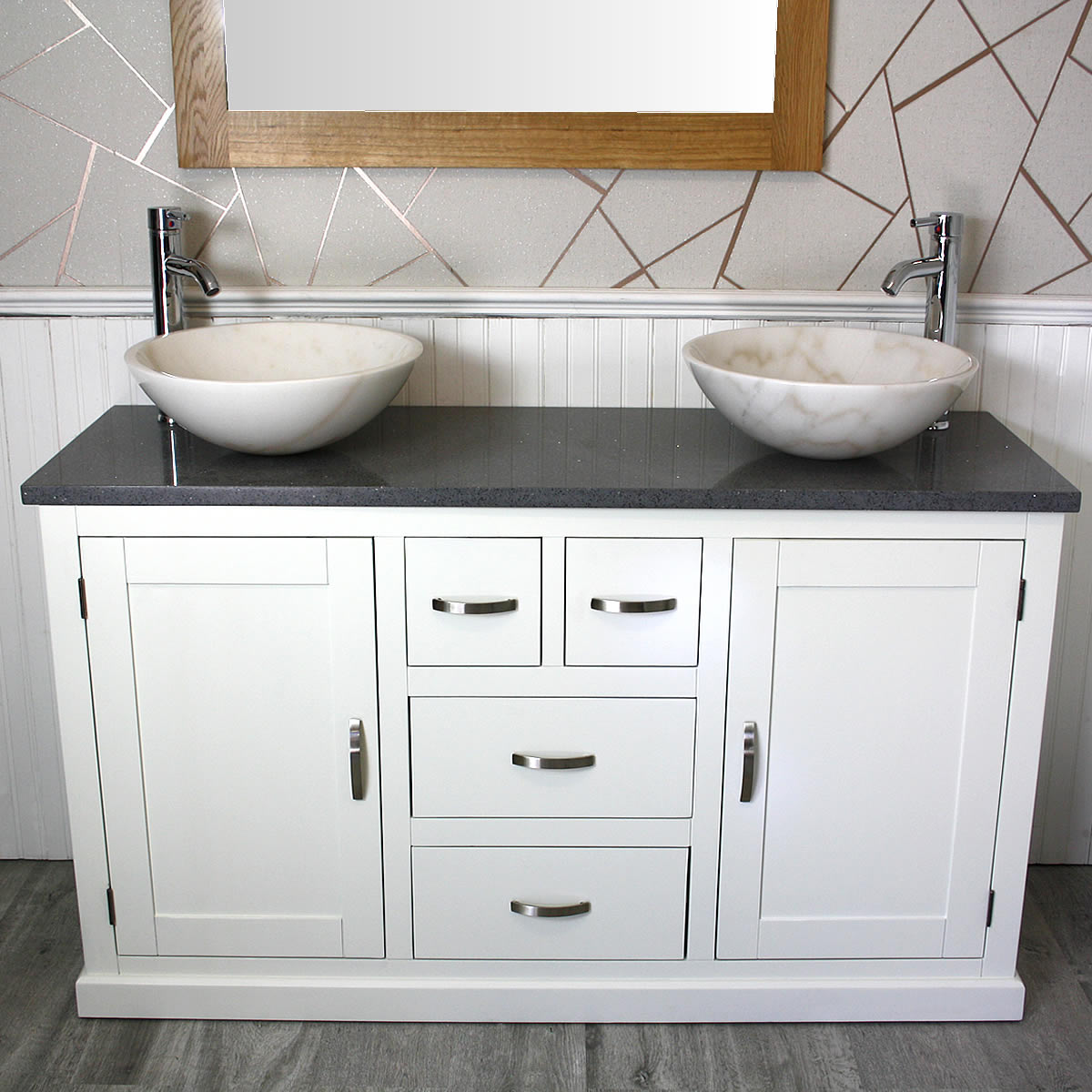 - Two beautiful heavy marble bowls of choice, see the dimensions of each basin below:
