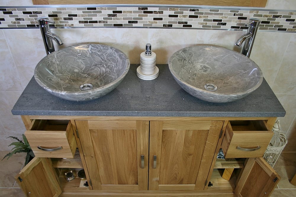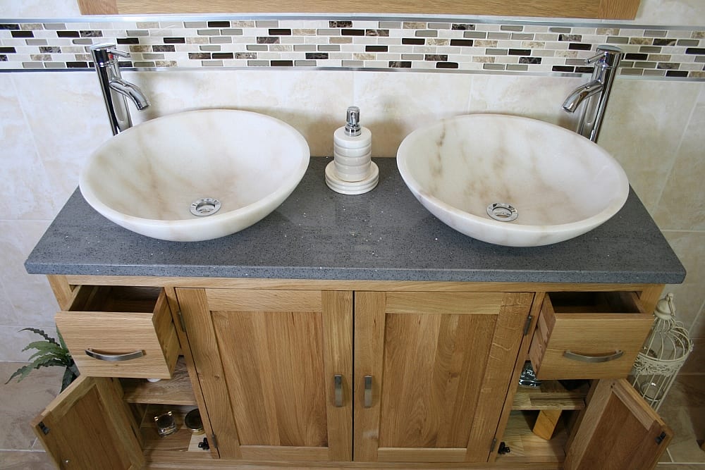 • Two beautiful heavy marble bowls of choice, see the dimensions of each basin below: