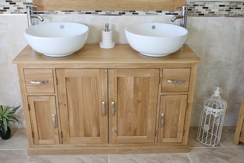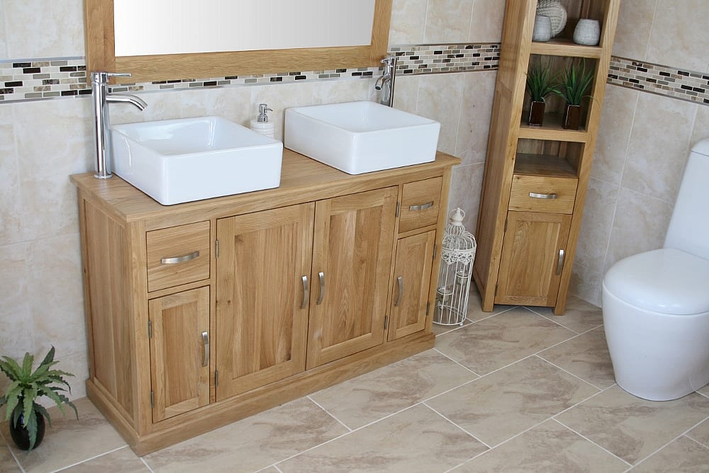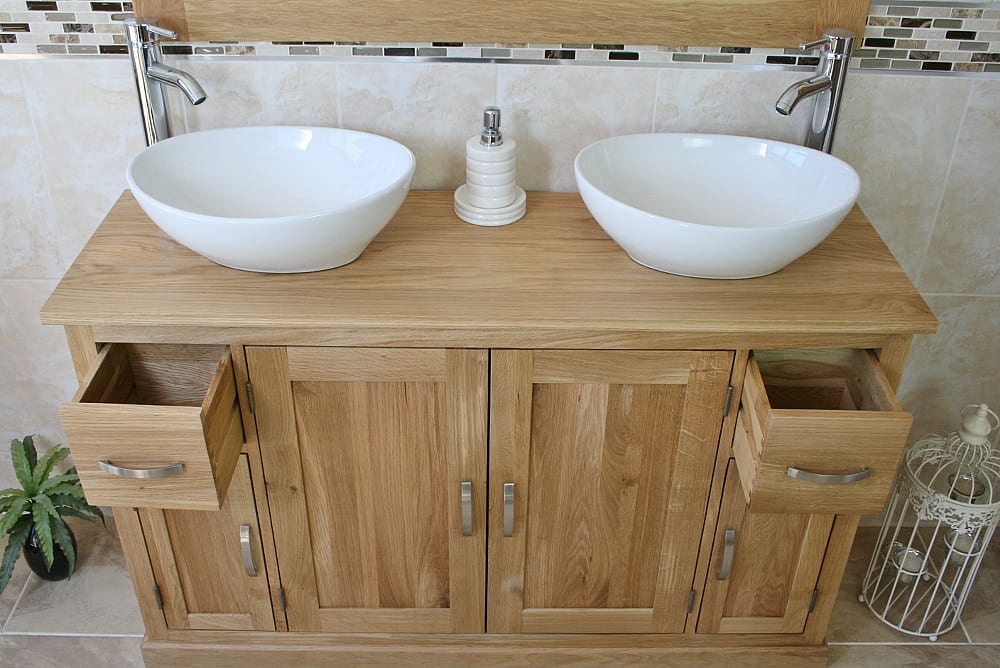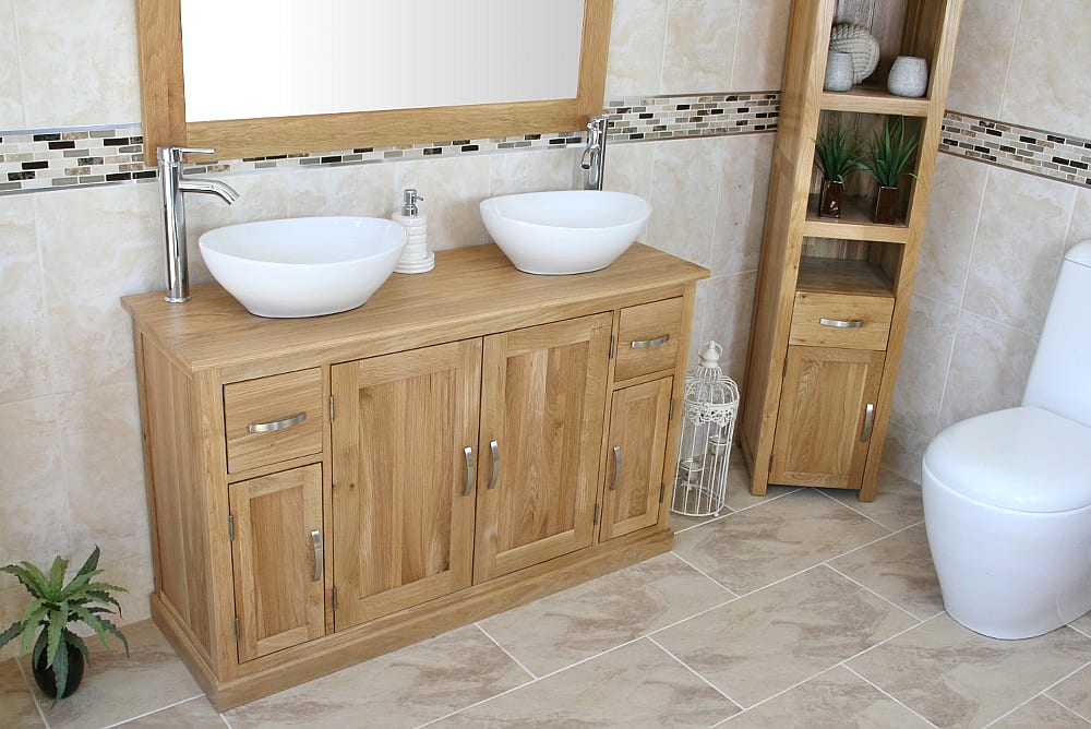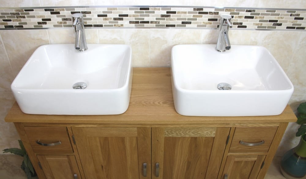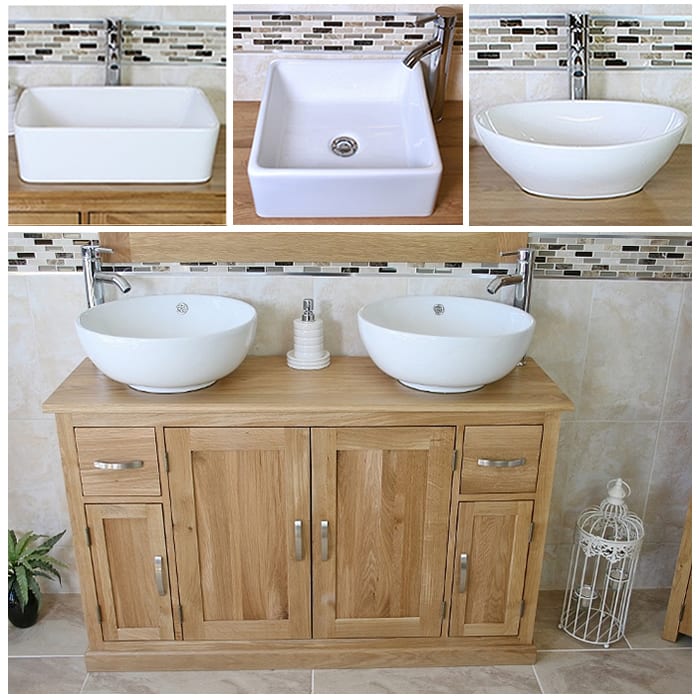 Large Bathroom Vanity Unit with Oak Top Finish & Your Choice of Matching Ceramic Basins!