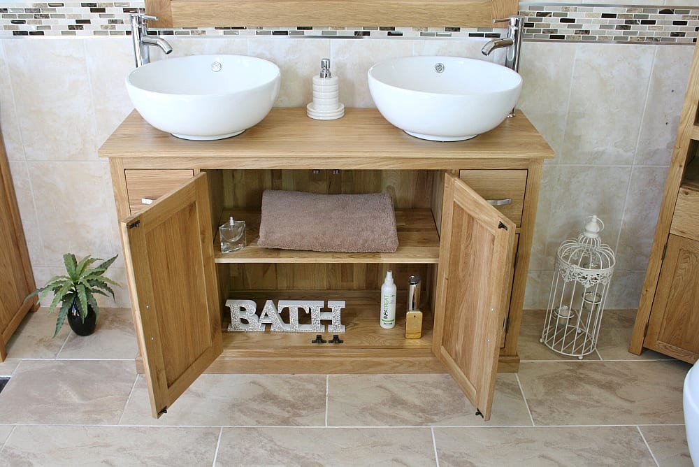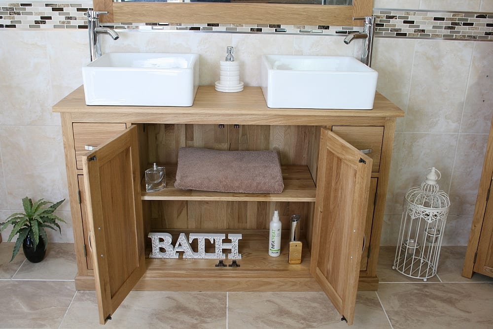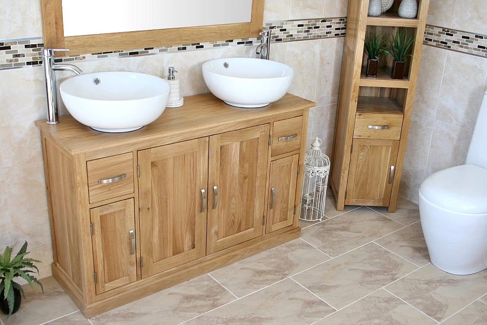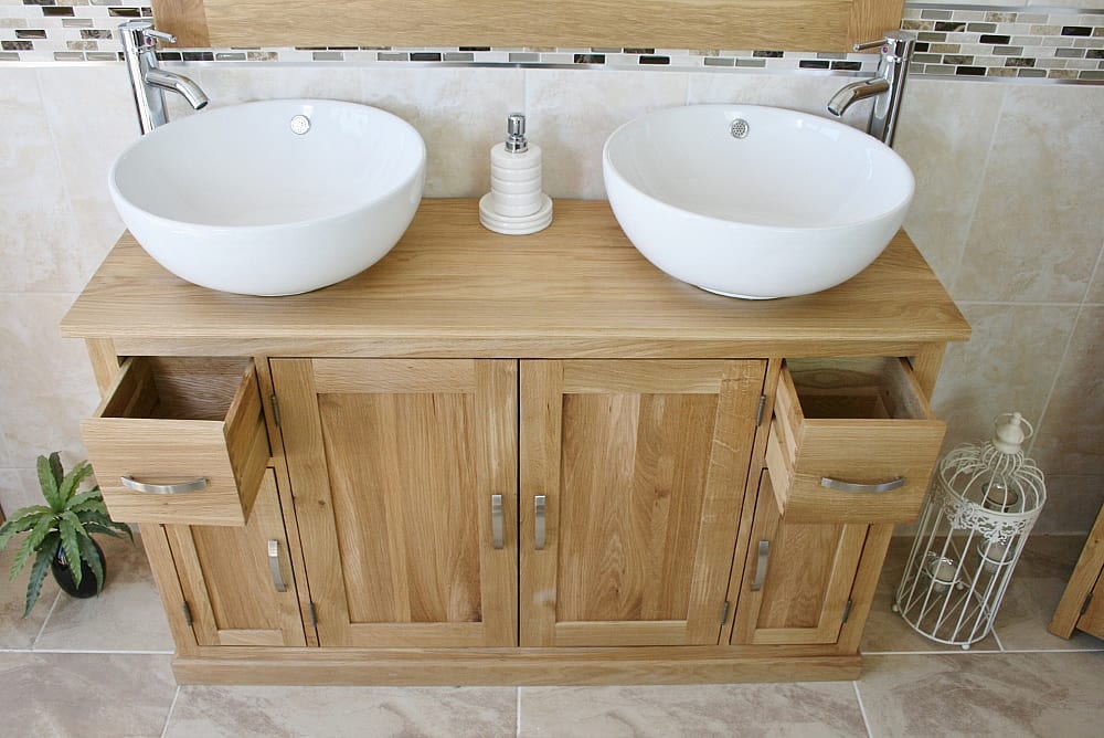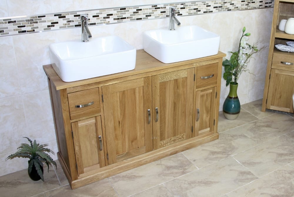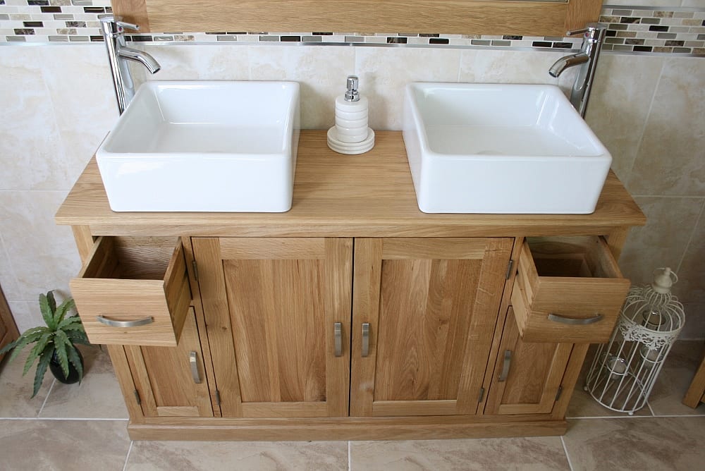 Large Bathroom Vanity Unit with Oak Top Finish & Your Choice of Matching Ceramic Basins!