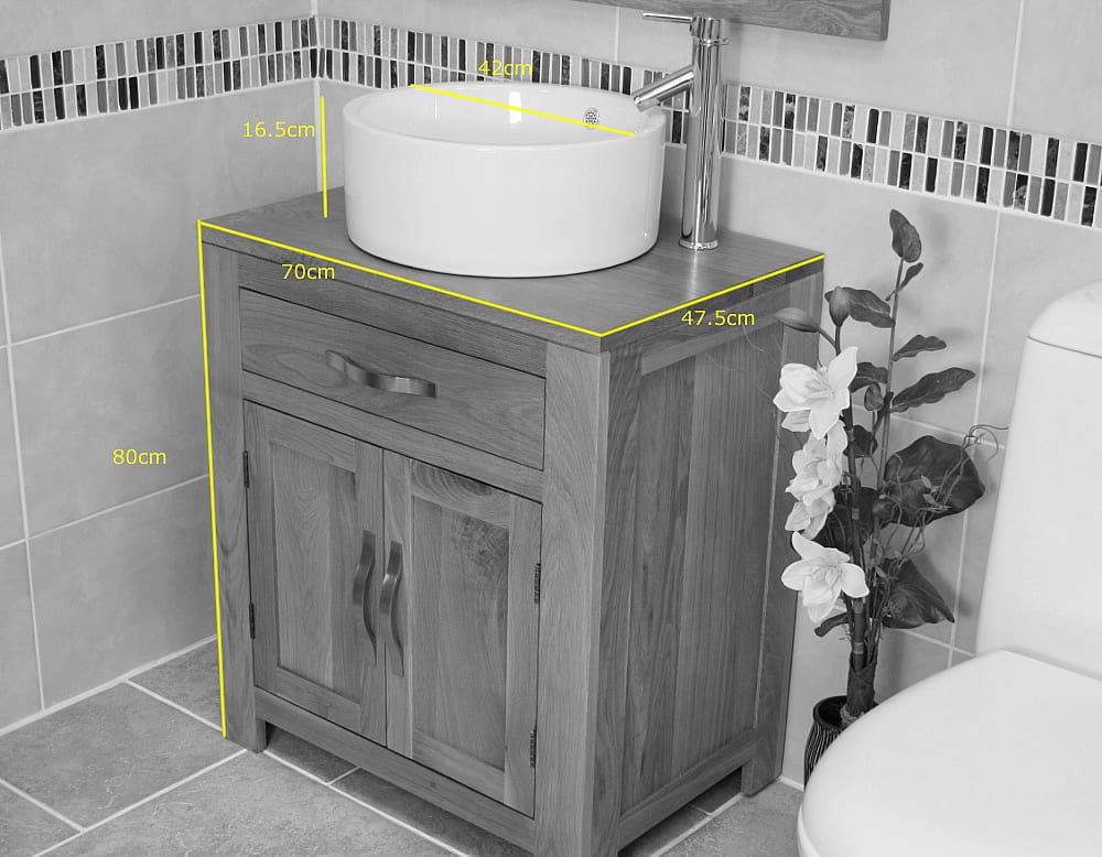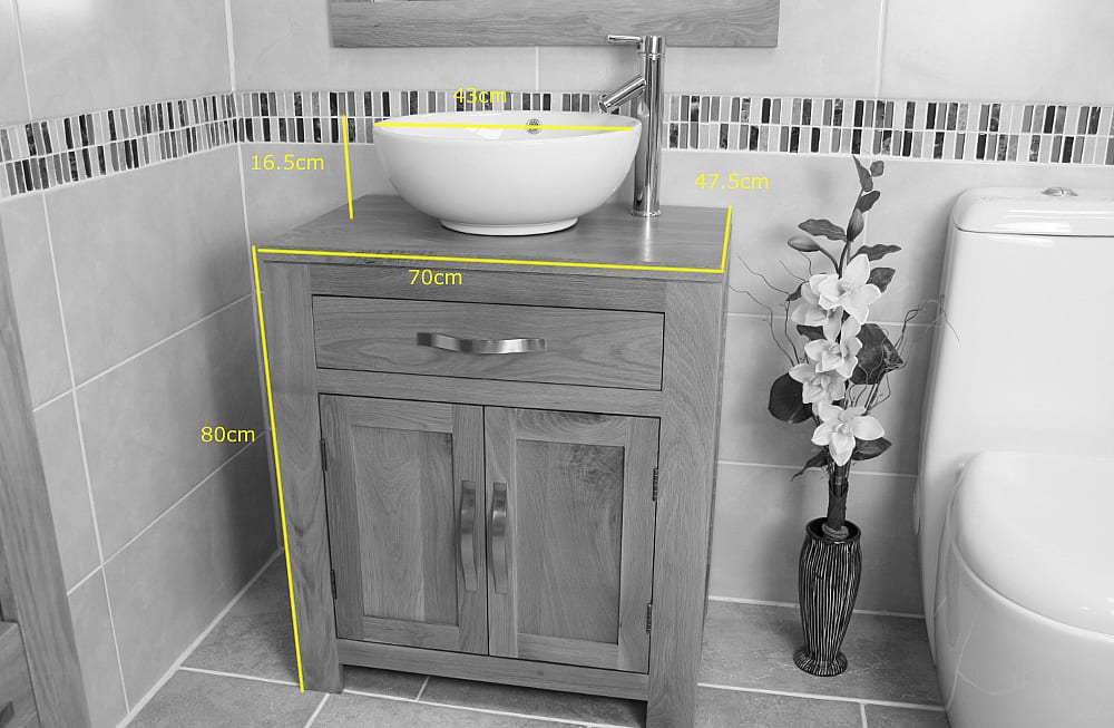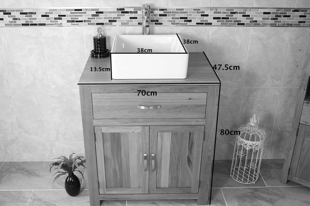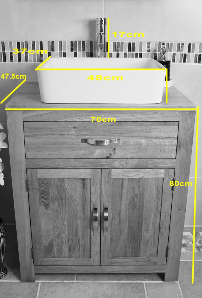- The overall dimensions of the bathroom cabinet without the bowl are: H80cm x D47.5cm x W70cm.