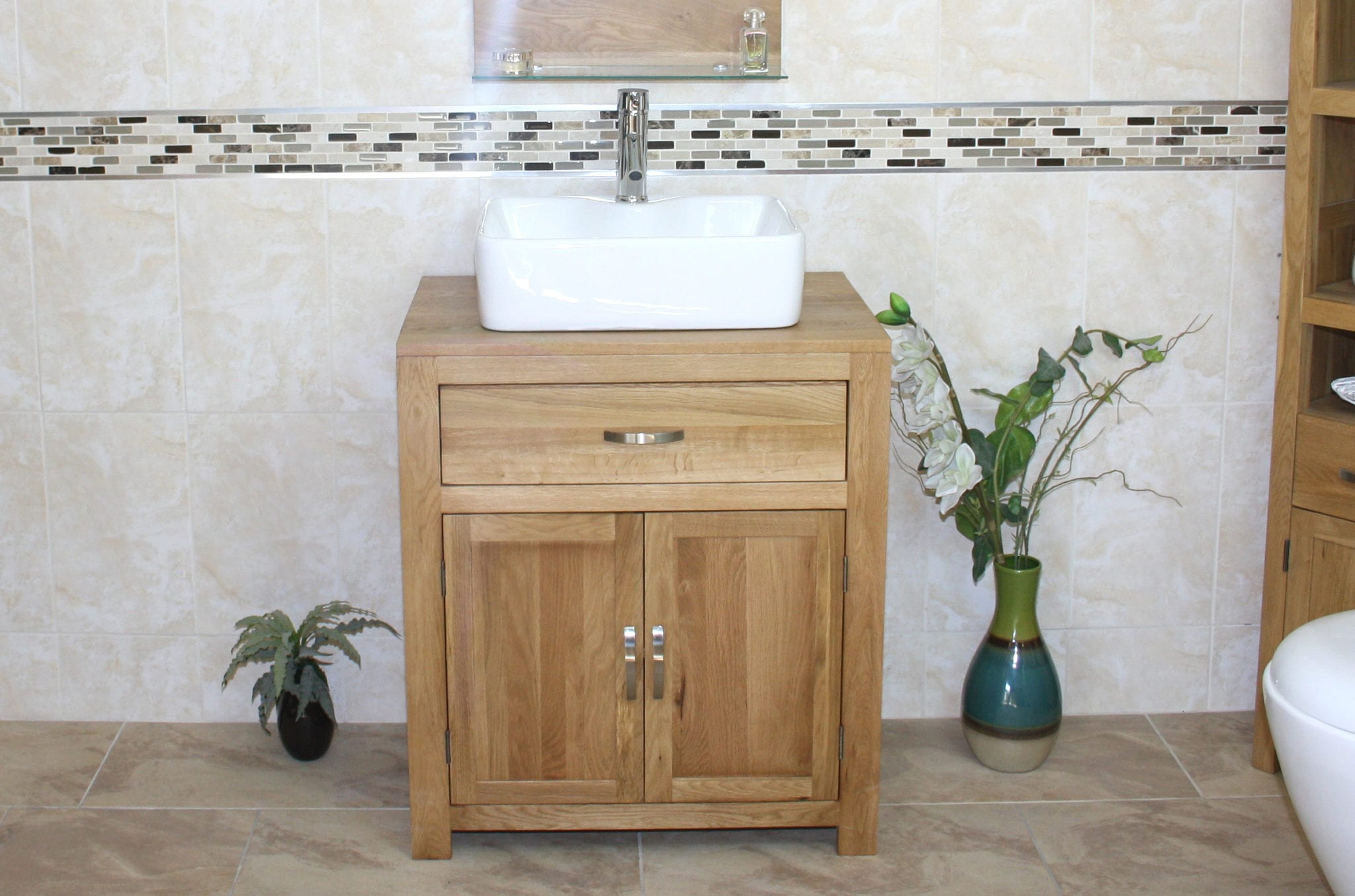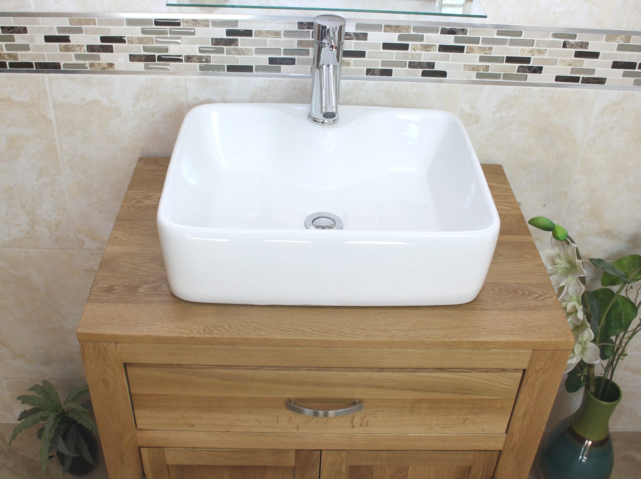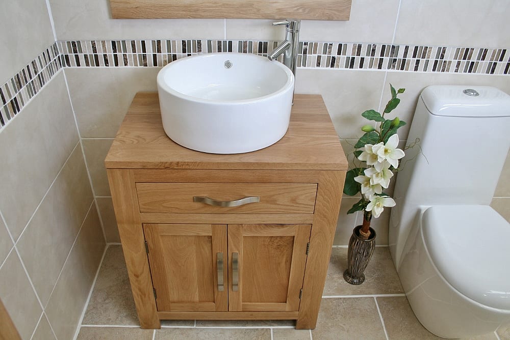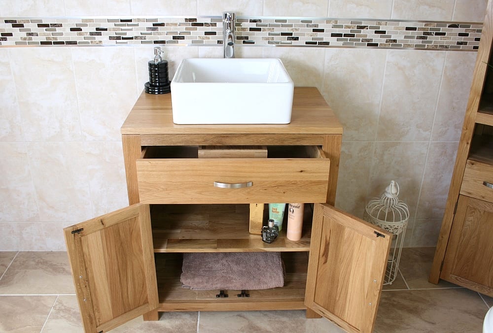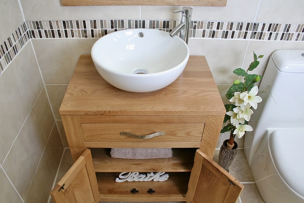 This single vanity unit is made from the best quality oak. The unit is made man by skilled carpenters to ensure that it stands the test of time and will be a proud piece of anyone’s bathroom for many years. The buyer can choose between a selection of stunning white ceramic bathroom basins to complete their favoured basin vanity unit set – the set also comes with our standard chromed mixer tap and is ready to be fitted and working on delivery. We only stock and display the very best in bathroom vanity and are proud to offer you this oak vanity unit and basin combination at an excellently competitive price.