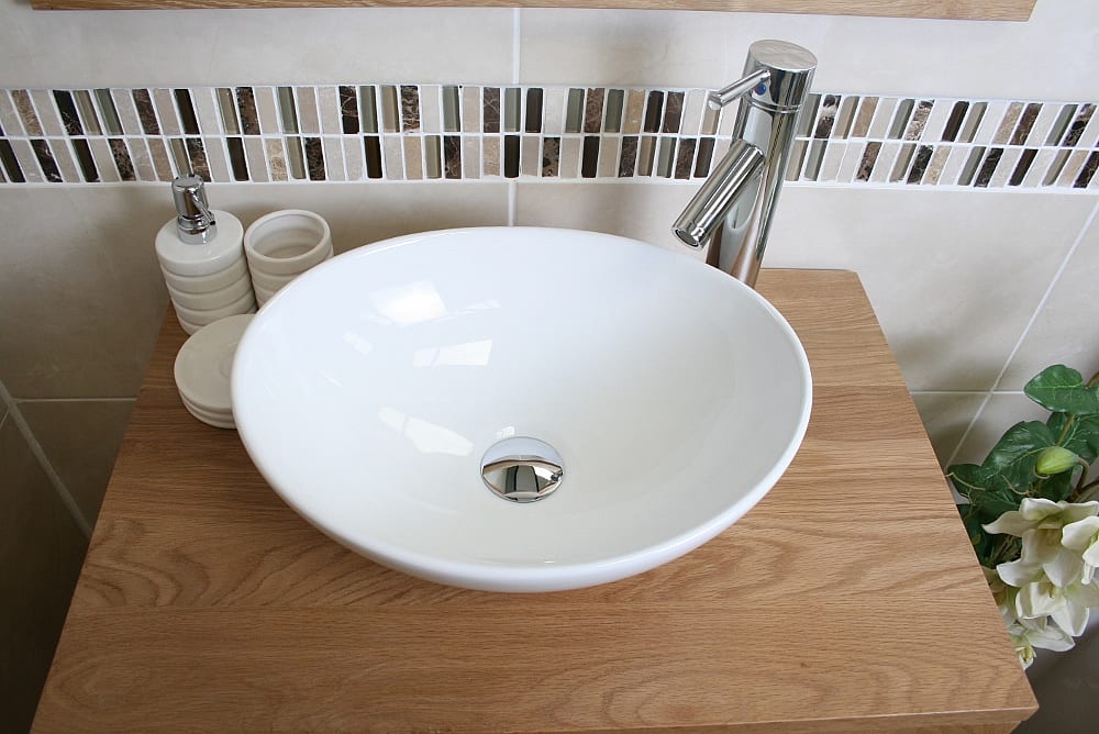 White Ceramic Vanity Basin on Solid Oak Top & Oak Vanity Unit