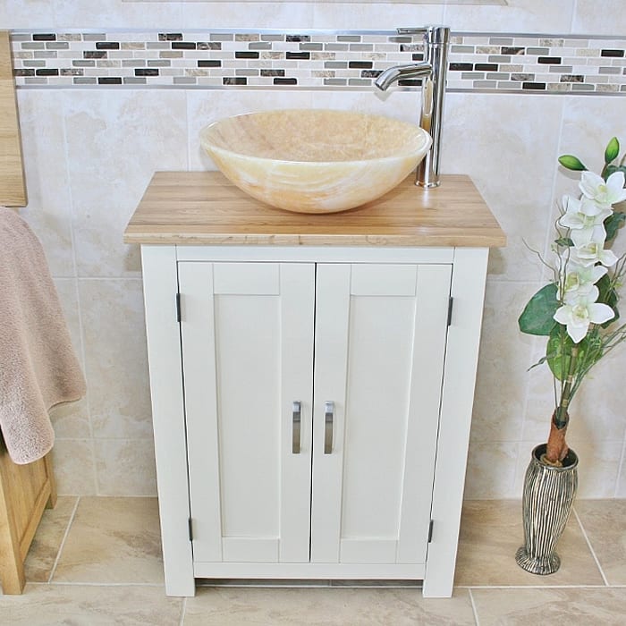 - A stunning off white/cream painted wooden base, oak topped slimline unit.