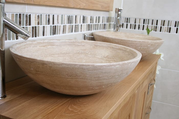 - Bowl A (travertine) Dimensions : H14cm X Diameter 43cm.
