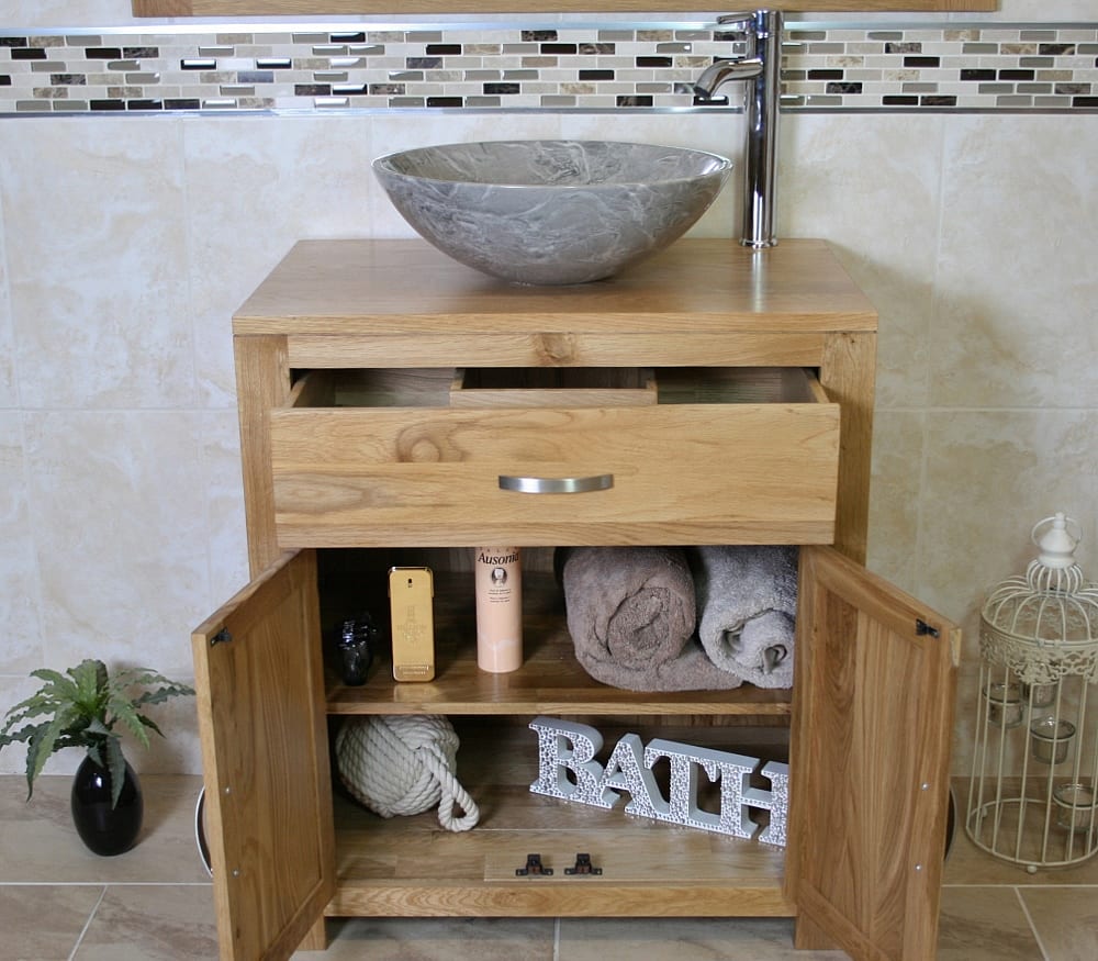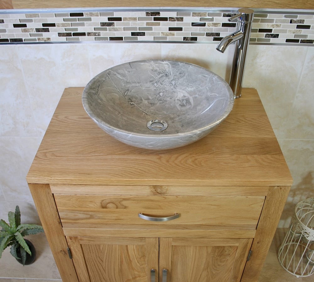 Solid Oak Top Single Vanity Unit with your choice of Travertine or Marble Basin finish – Both are very classy and will be a great addition to your home.