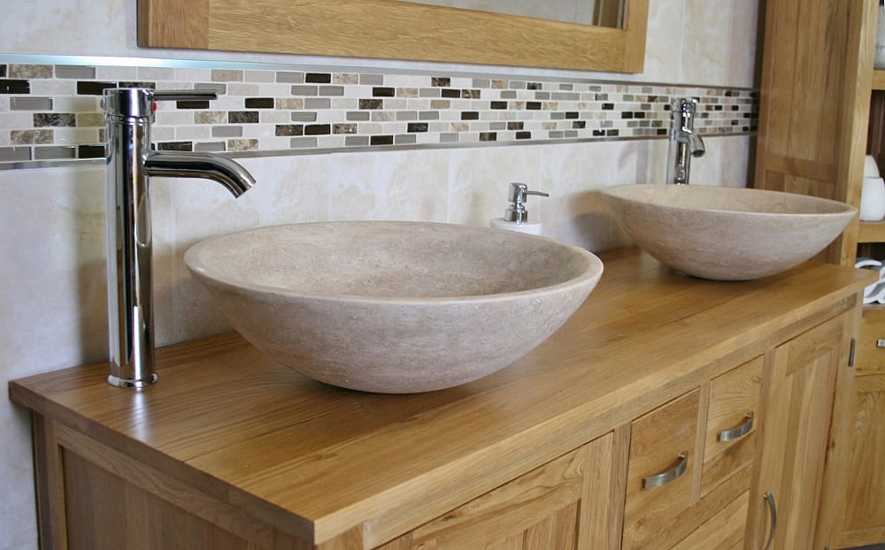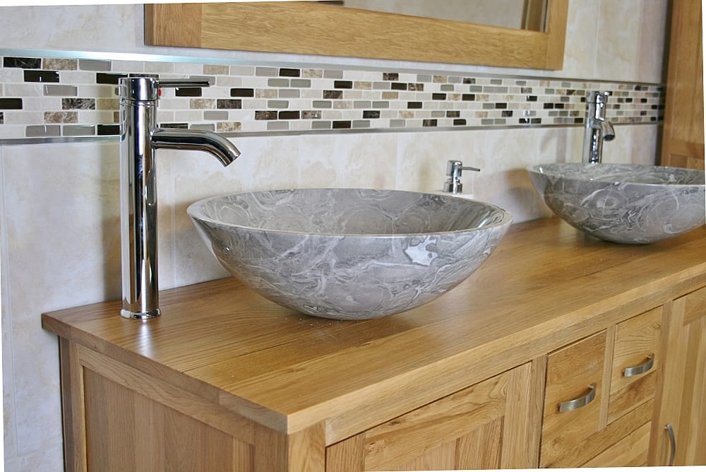 - Two chromed mixer taps.