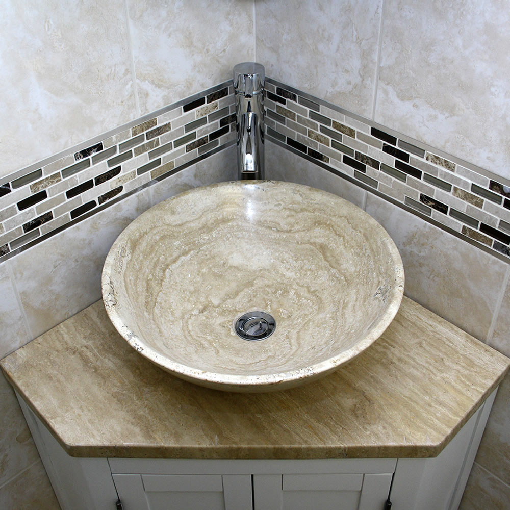 - A beautiful travertine bowl set, see the dimensions of each basin below:
