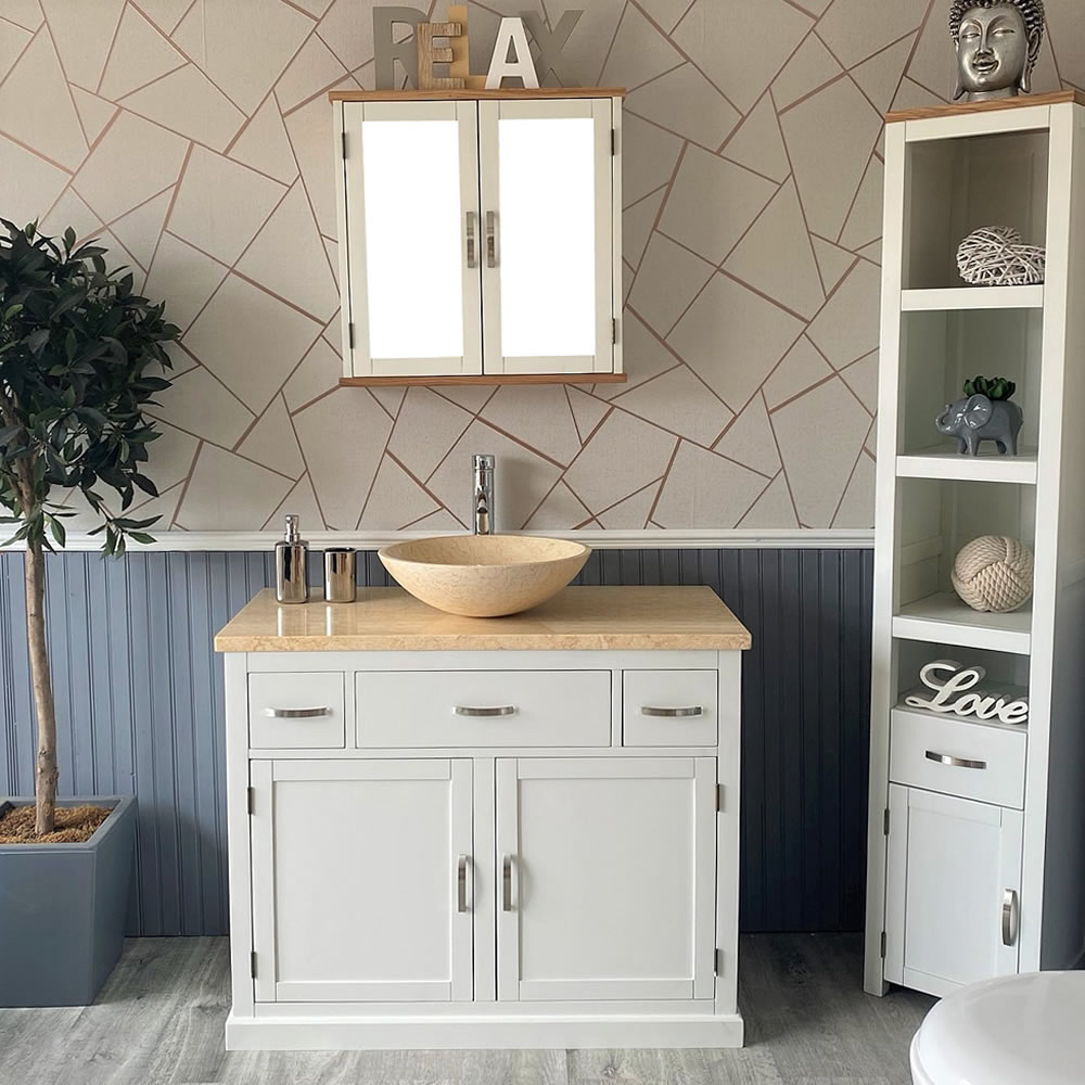 Painted White Unit | Cream Marble Top Cream Basin 1161PCM025CM