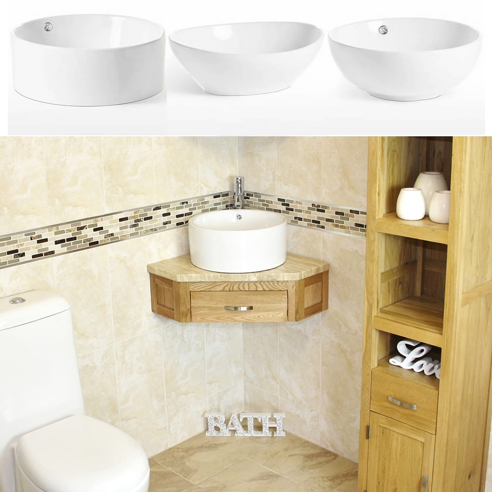 This compact Travertine topped vanity unit & Ceramic basin set is ideal for cloakrooms. The stylish oak unit is designed to fit neatly into the corner of a bathroom or cloakroom and attach to the wall. It is an extremely space efficient unit being that it will fit onto and hang from the wall, and it also comes with 1 storage drawer with good space. If you would prefer to match the Travertine top with a Travertine basin for a touch more luxury, then you can find it here.