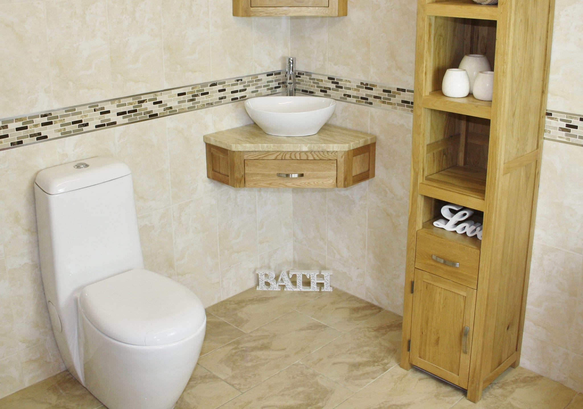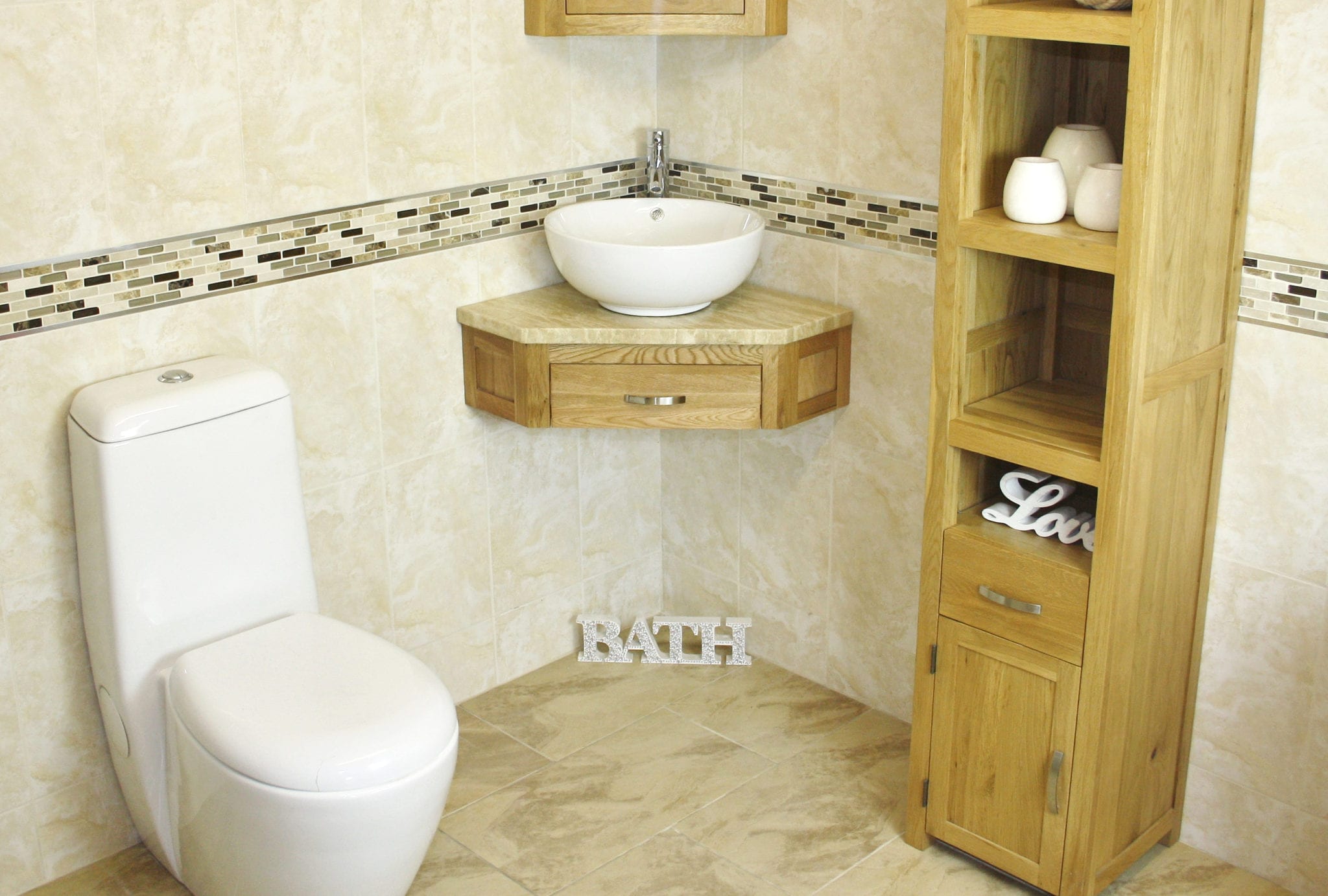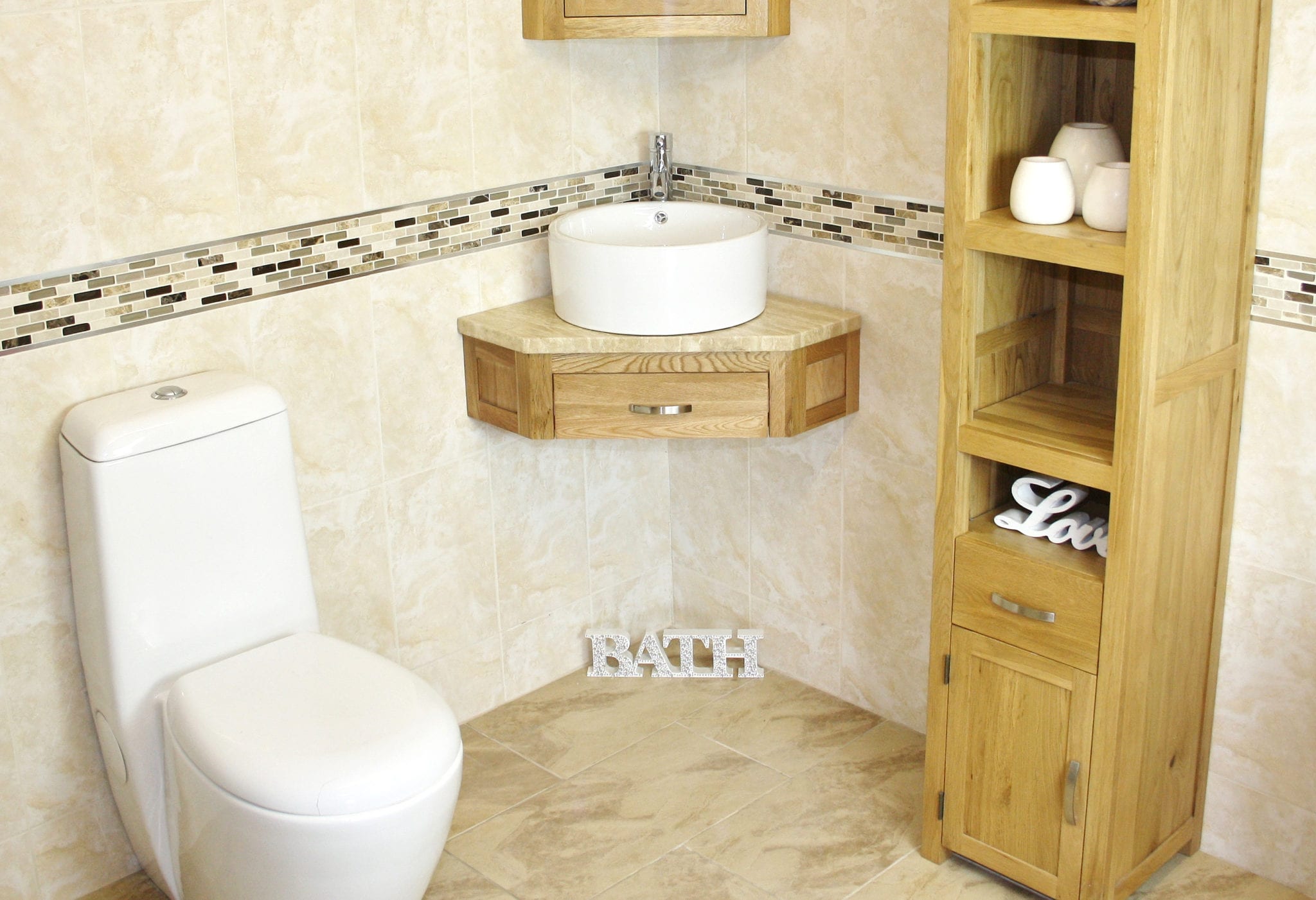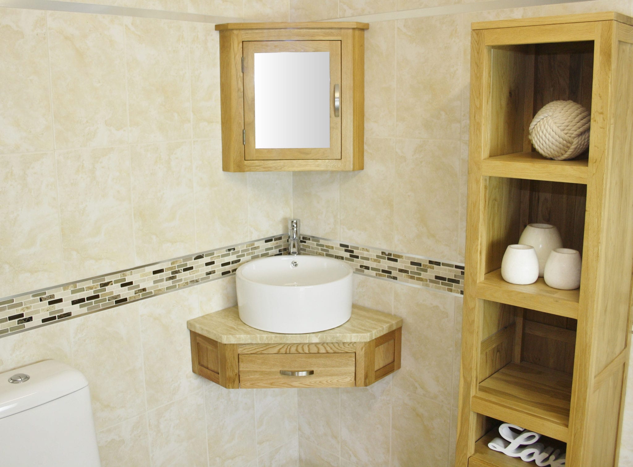 Mirrored corner cabinet and tall storage unit shown are not included but are optional extras avaiable on checkout.