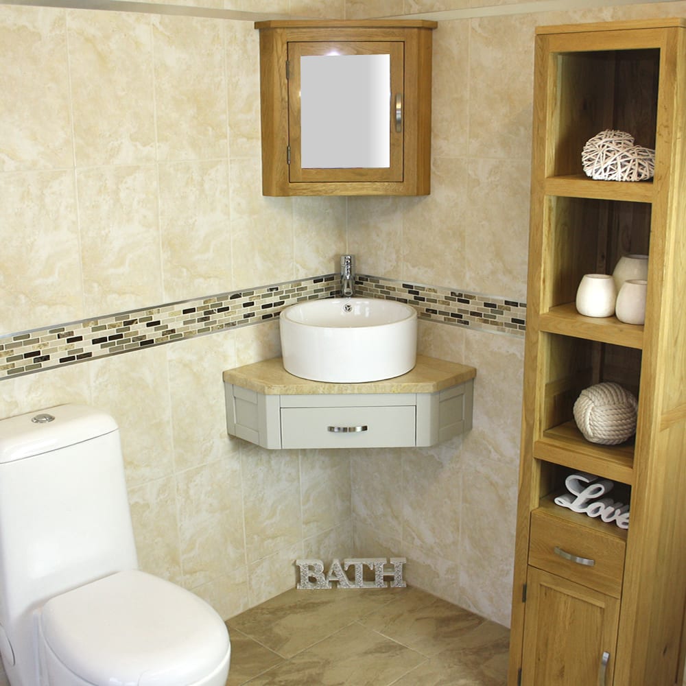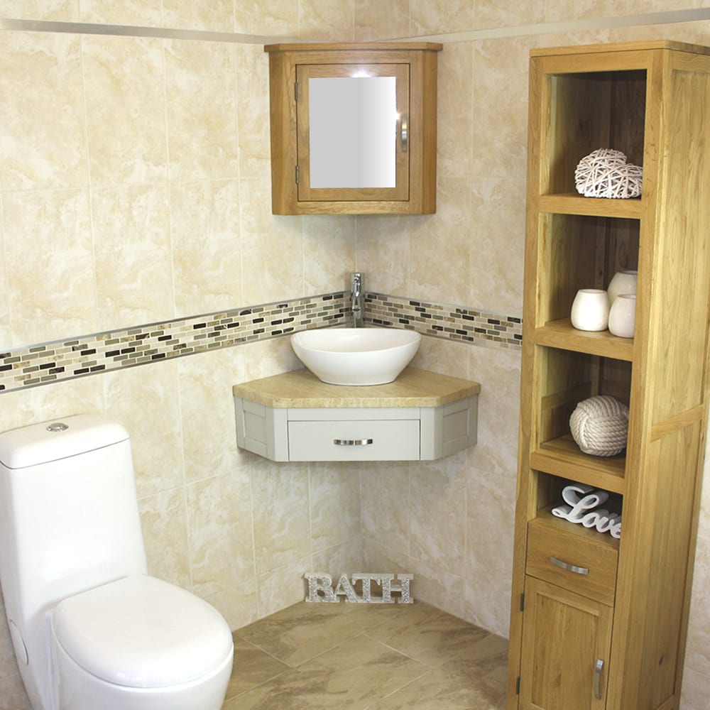 Mirrored corner cabinet and tall storage unit in image are not included but are optional extras, please see below.