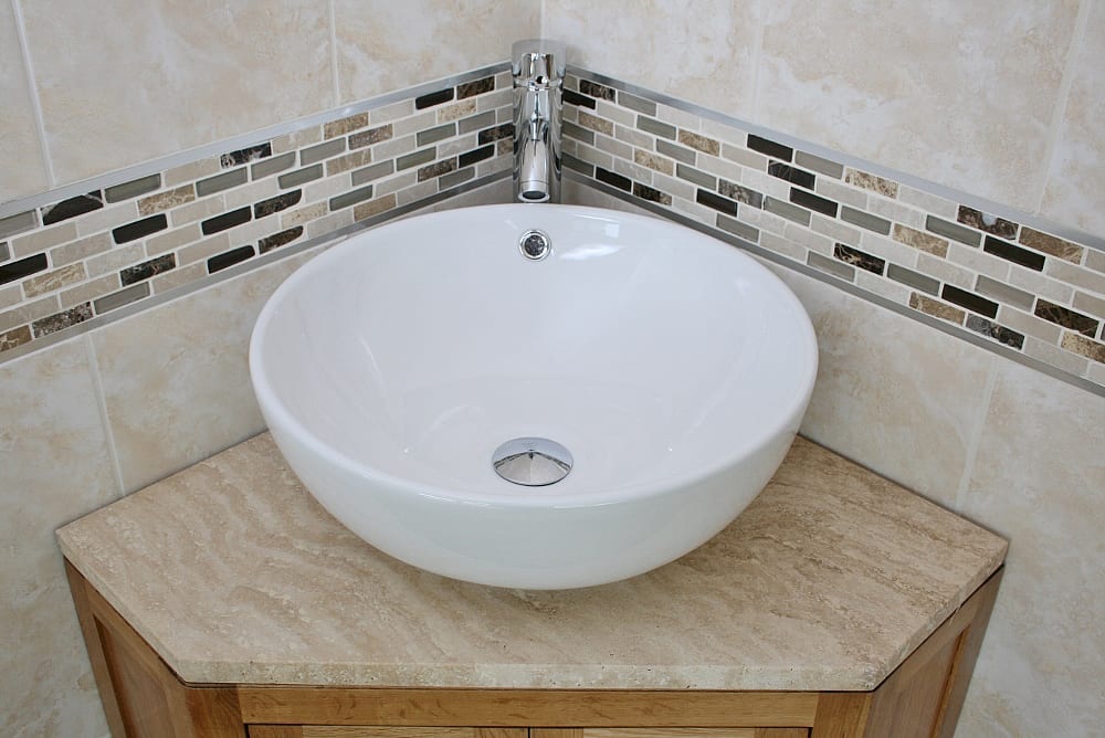 Corner Vanity Unit & Basin with Travertine Top