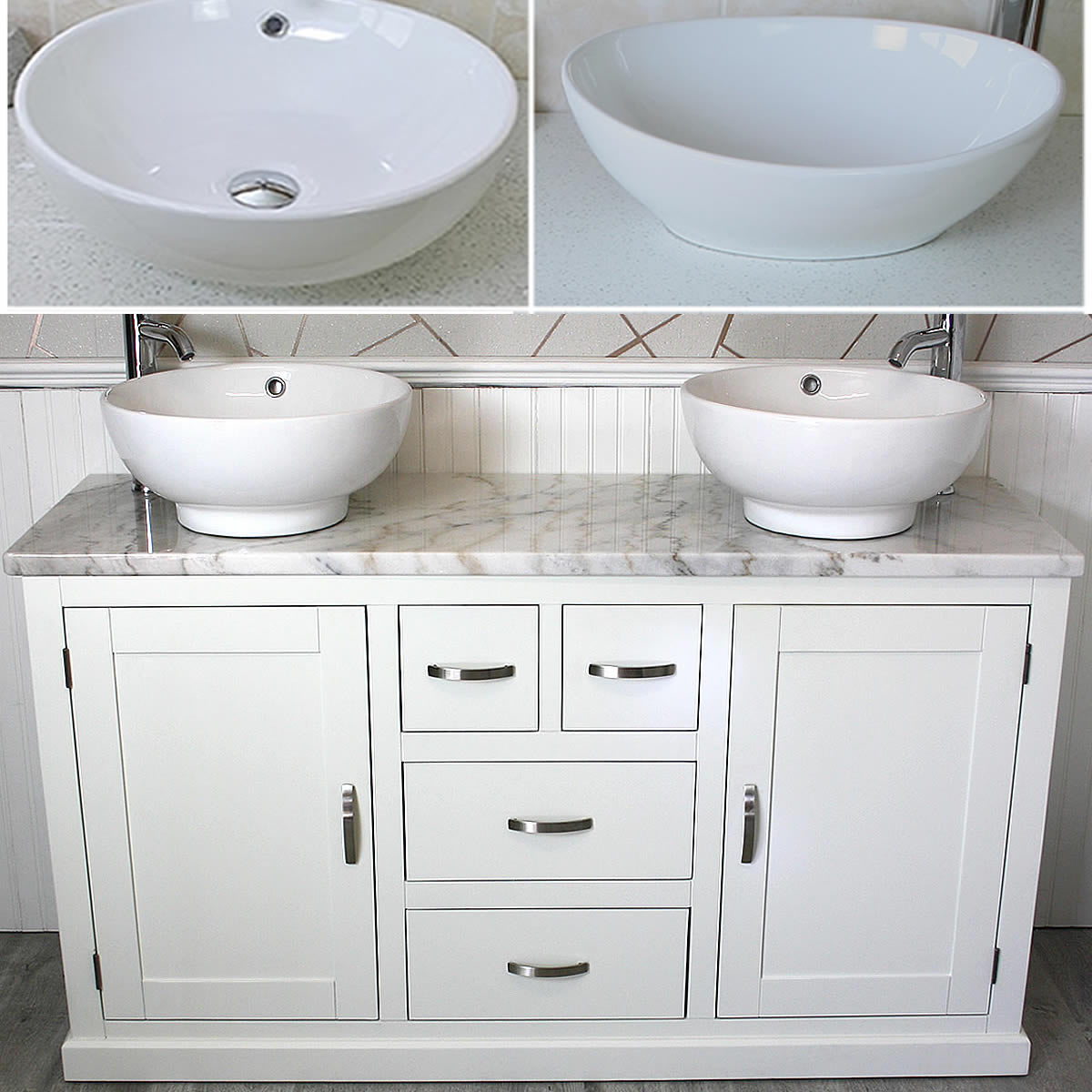 - Two ceramic bowls of choice, see the dimensions of each basin below: