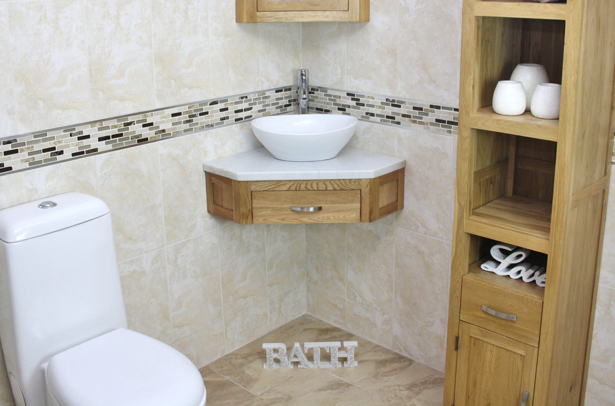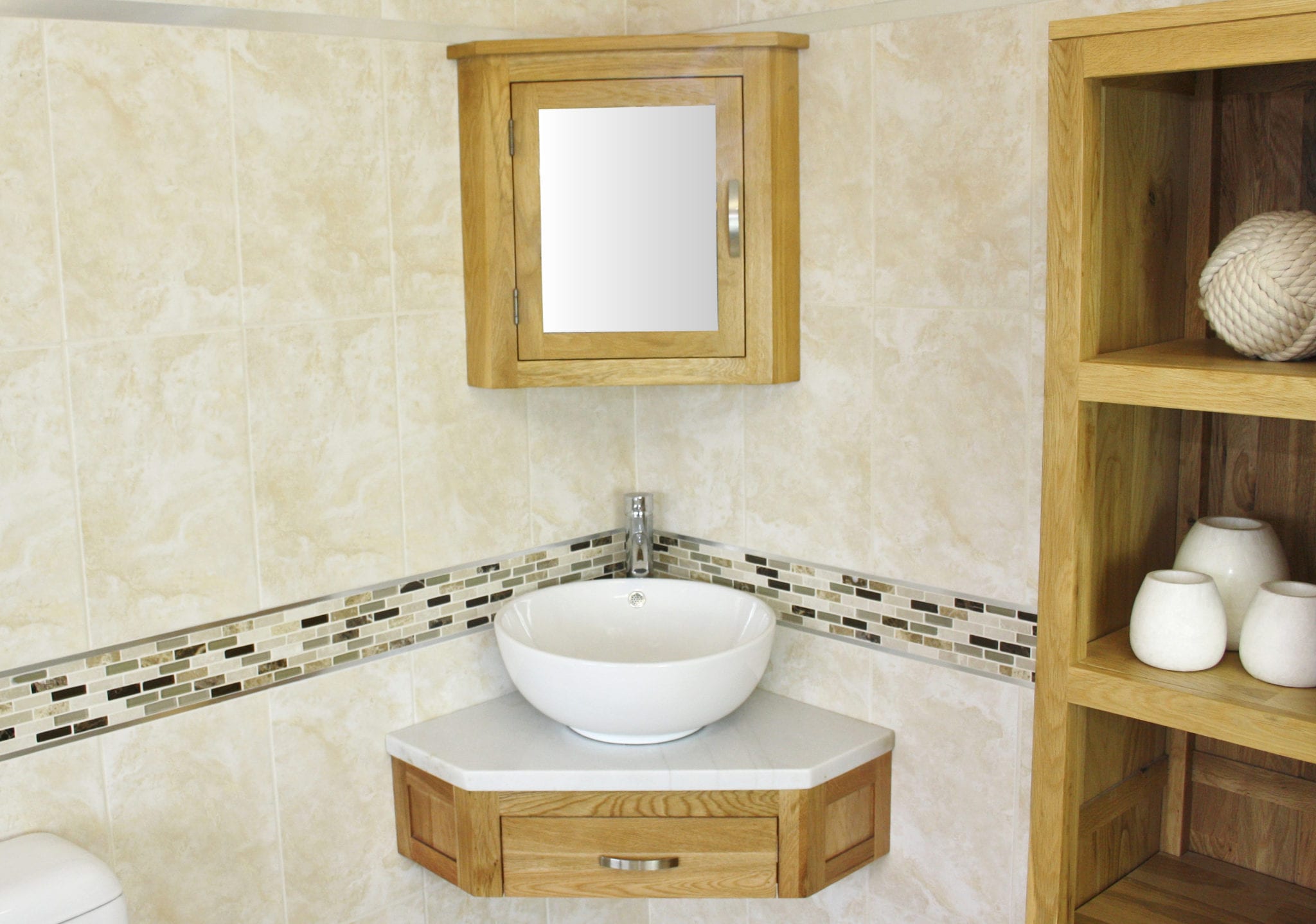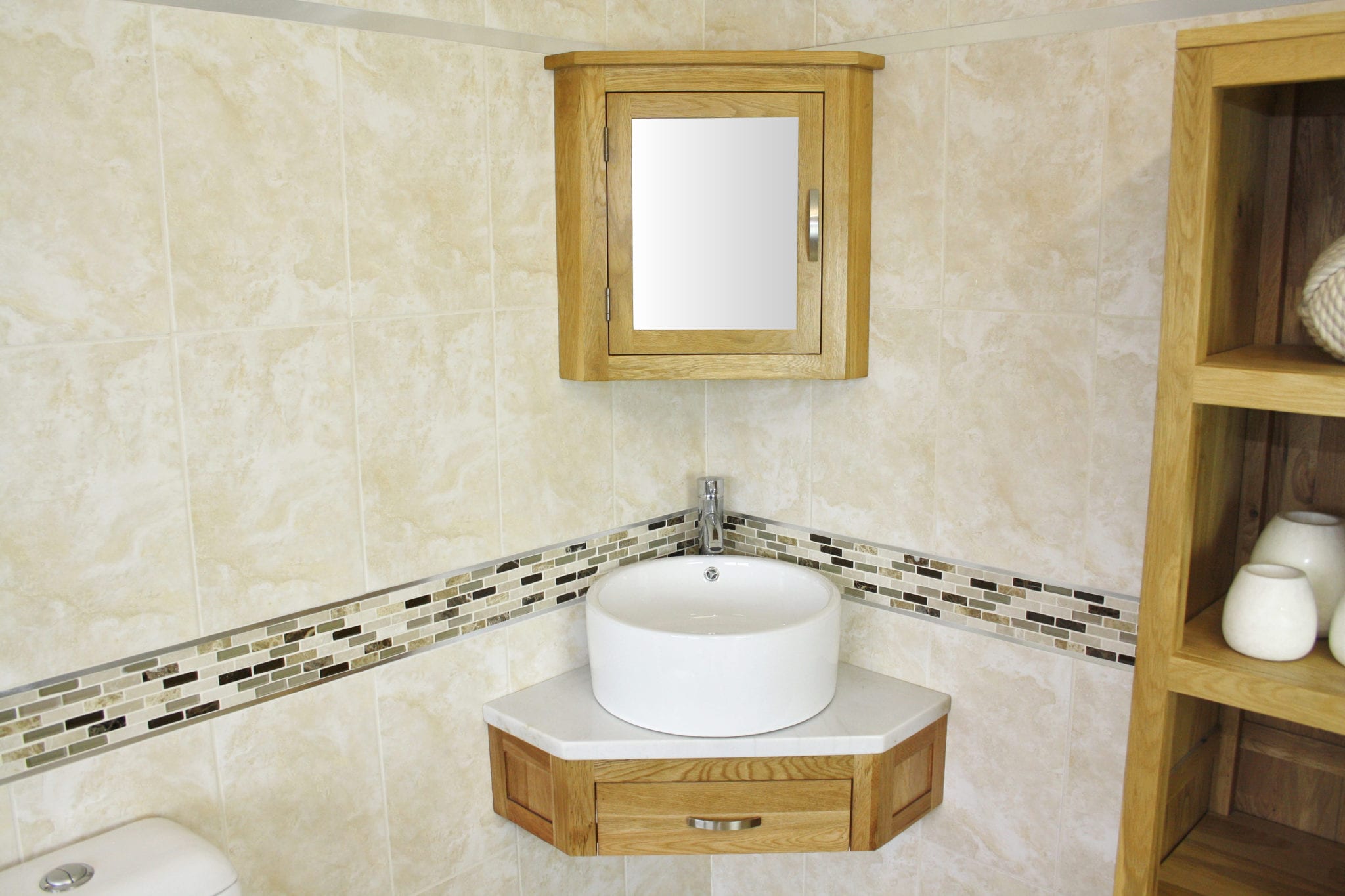 Mirrored corner cabinet and tall storage unit in image are not included but are optional extras, please see below.