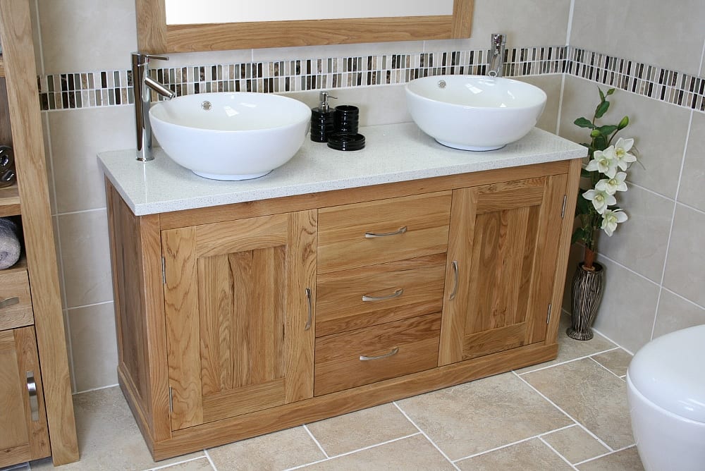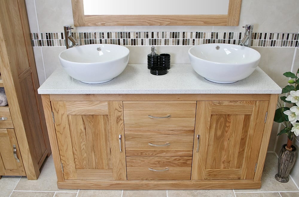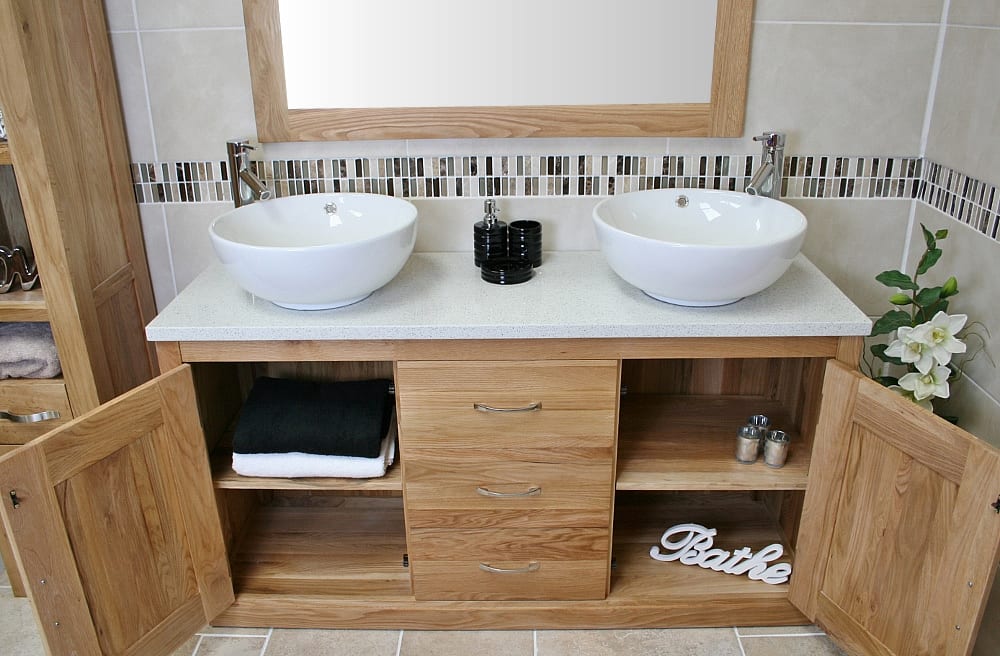 Hand made solid oak bathroom vanity units when combined with natural stone are not only functional and durable but are a beautiful piece of furniture in their own right. The ultimate in bathroom luxury has to be a double vanity unit.