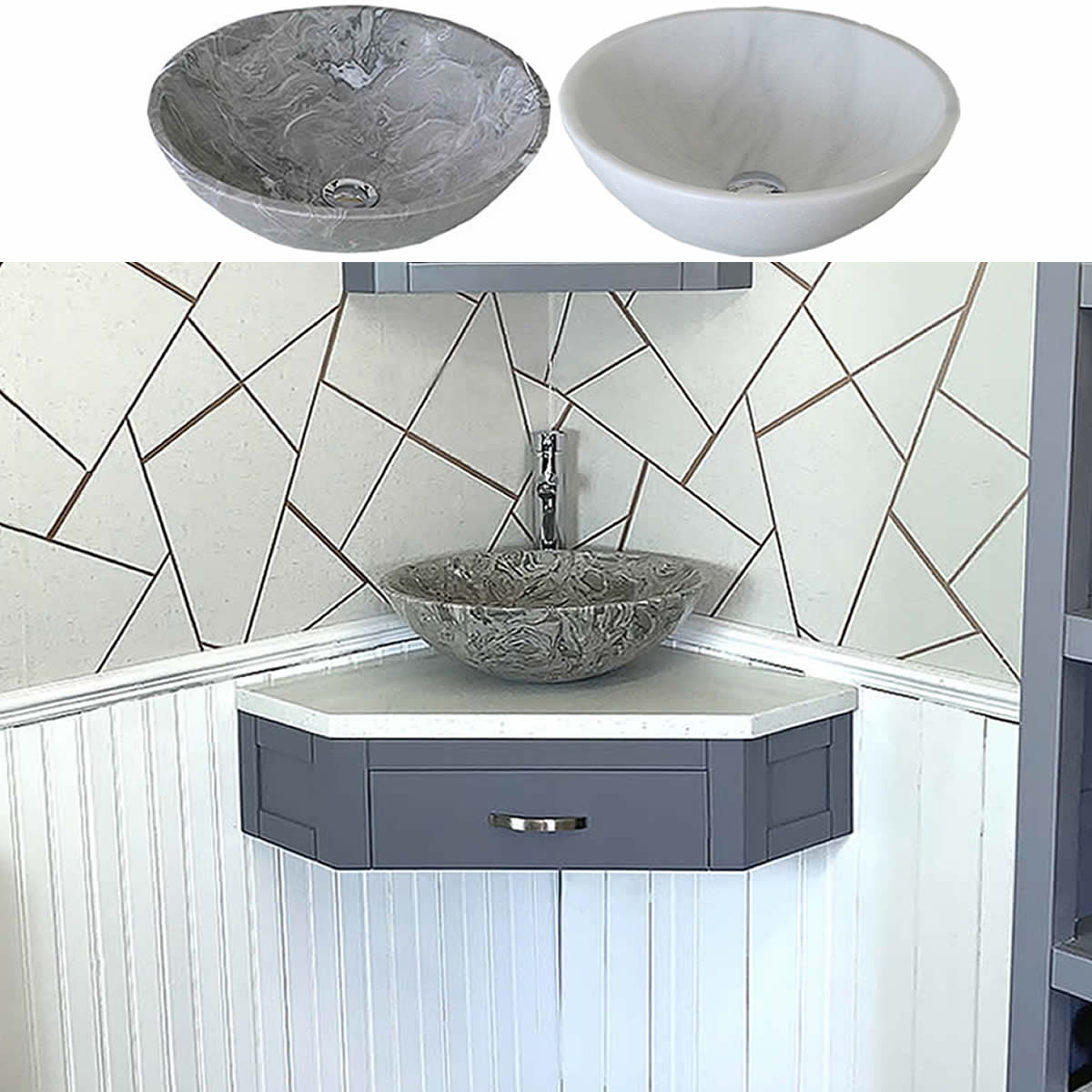 - A stunning stone bowl set, see the dimensions of each basin below: