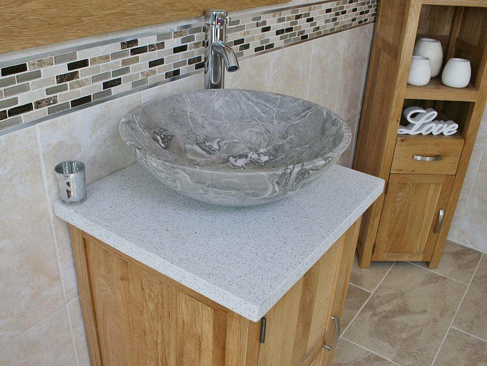- A beautiful heavy marble bowl of choice, see the dimensions of each basin below: