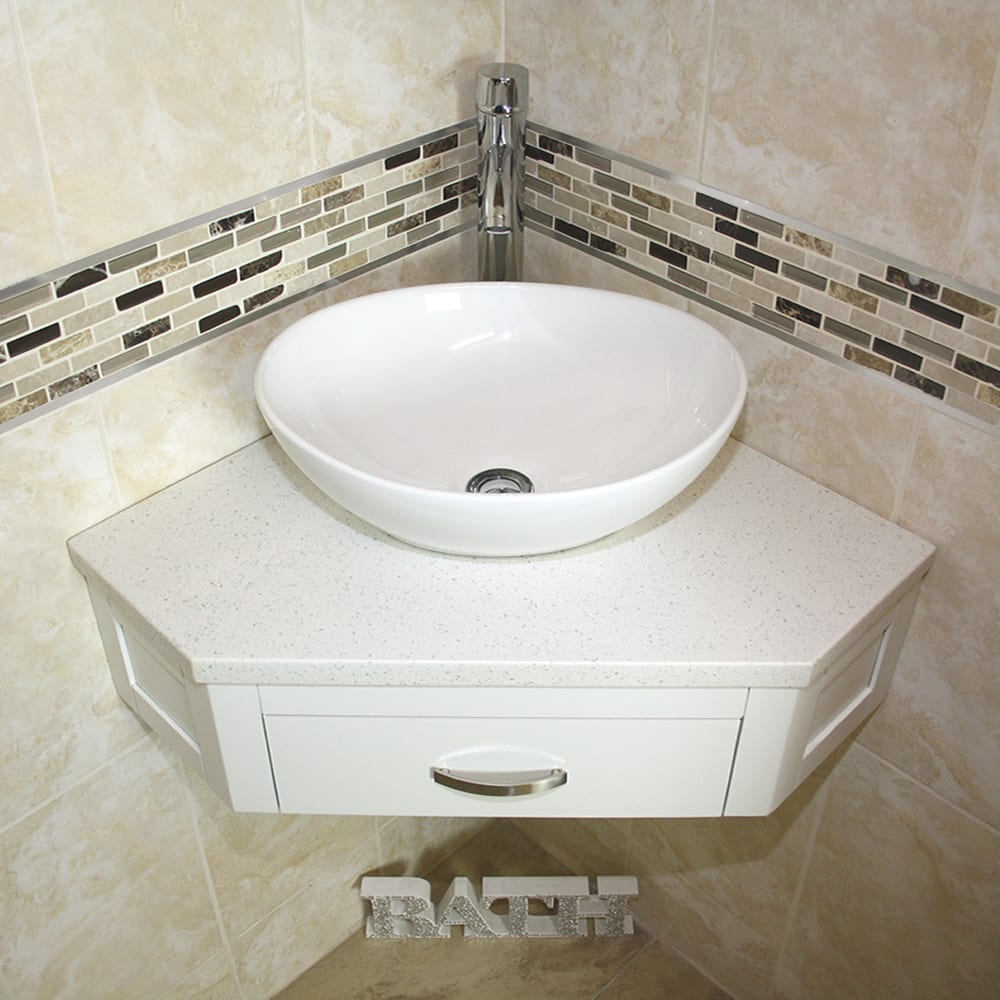 - A stunning pre drilled sparkling white quartz top.