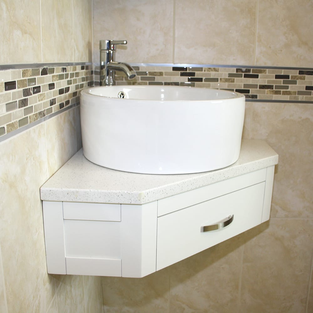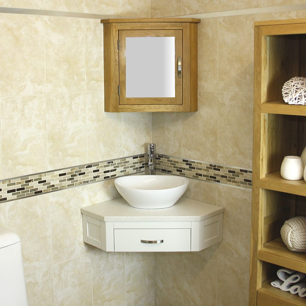 Mirrored corner cabinet and tall storage unit in image are not included but are optional extras, please see below.